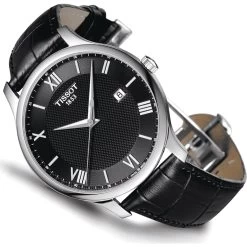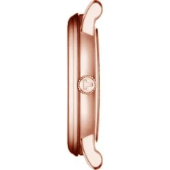 This Tissot watch has a case made of Real 18 Ct Gold with a diameter of 33.7 mm and is fitted with a leather strap. Inside the case lies a ETA movement and the watch features a Hessalite crystal.