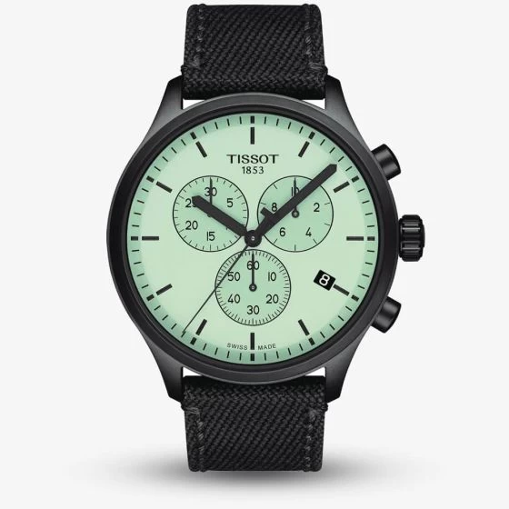 From Tissot’s T-Sport collection, an eye catching design crafted with a hard wearing stainless steel and black PVD case featuring a green chronograph dial with black coloured hands and indexes which are protected by a scratch resistant Sapphire Crystal glass. Additionally this model is powered by a Swiss quartz movement and features date display, stopwatch functionality and a black fabric strap that complements it perfectly.
