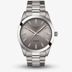 The Tissot T127.410.44.081.00 T-Classic watch combines a 40mm round shaped titanium case and bracelet with a butterfly clasp and push buttons. It has a grey analogue dial with luminescent hands and a date display which is protected beneath domed scratch resistant sapphire crystal glass. Power is generated by the Swiss made Calibre 11 ½”’ quartz movement with 3 jewels and an end of life indicator. This model also has a water resistance of up to 100 metres (330ft / 10 bar pressure).