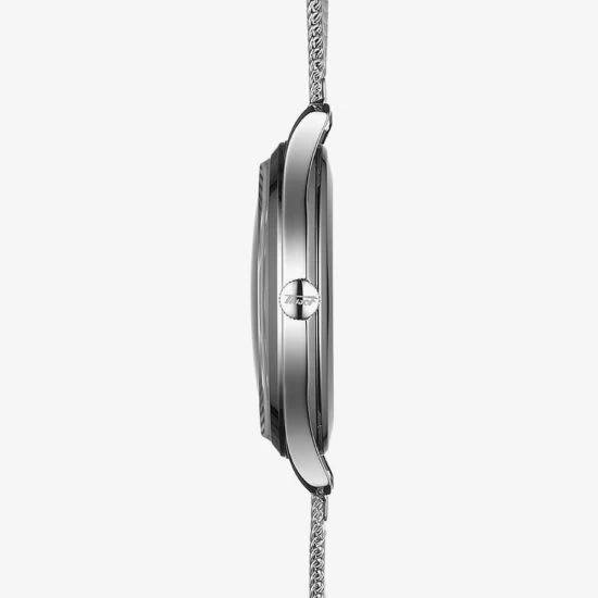 With it’s sophisticated and classic design, the Visodate is the perfect companion. Crafted in stainless the steel, the watch features a jet black dial with contrasting sterling silver batons, hour markers and a date window at 3 o’clock. The watch is finished with an adjustable mesh strap and a fold over clasp fastening.