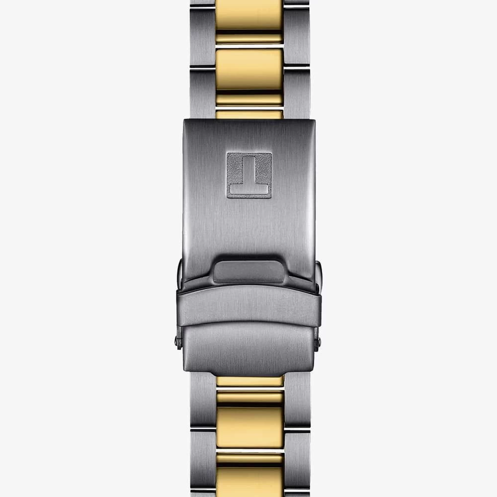โข Presented on a two colour stainless steel bracelet with push button deployment clasp.