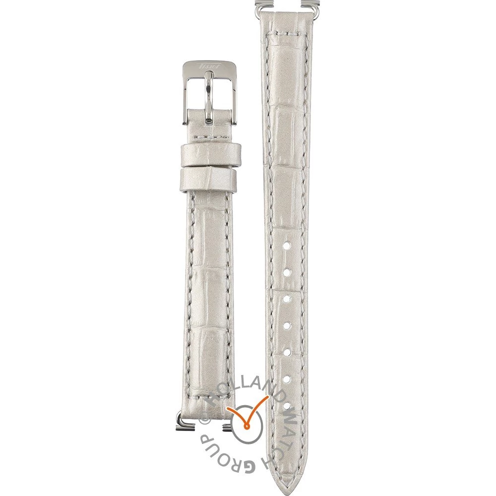This Tissot watch strap is made of leather and is attached to the watch by means of pin and tube. The band has a width of 12 mm and is closed by means of a buckle. The strap has no straight mount which means that this strap is only suitable for the watches listed below.