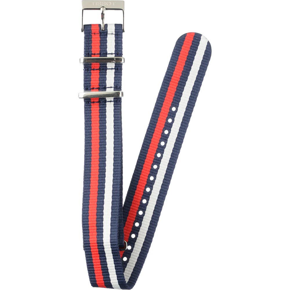 This Tissot watch strap is made of textile and is attached to the watch by means of push pins. The band has a width of 19 mm and is closed by means of a buckle. The strap has a straight mount which means that this strap is suitable for all Tissot watches with a straight mount.