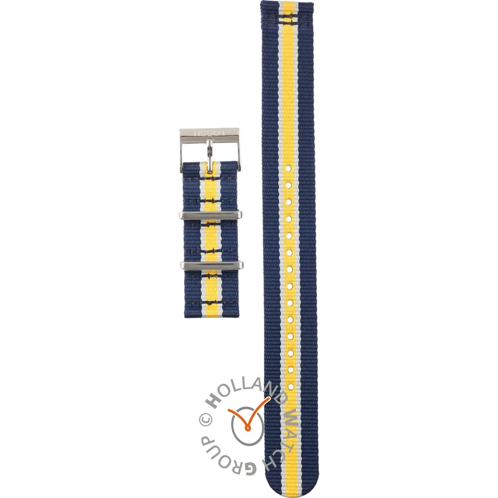 This Tissot watch strap is made of textile and is attached to the watch by means of push pins. The band has a width of 19 mm and is closed by means of a buckle. The strap has a straight mount which means that this strap is suitable for all Tissot watches with a straight mount.