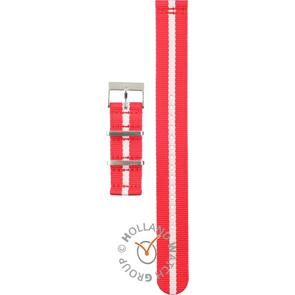 This Tissot watch strap is made of textile and is attached to the watch by means of push pins. The band has a width of 19 mm and is closed by means of a buckle. The strap has a straight mount which means that this strap is suitable for all Tissot watches with a straight mount.