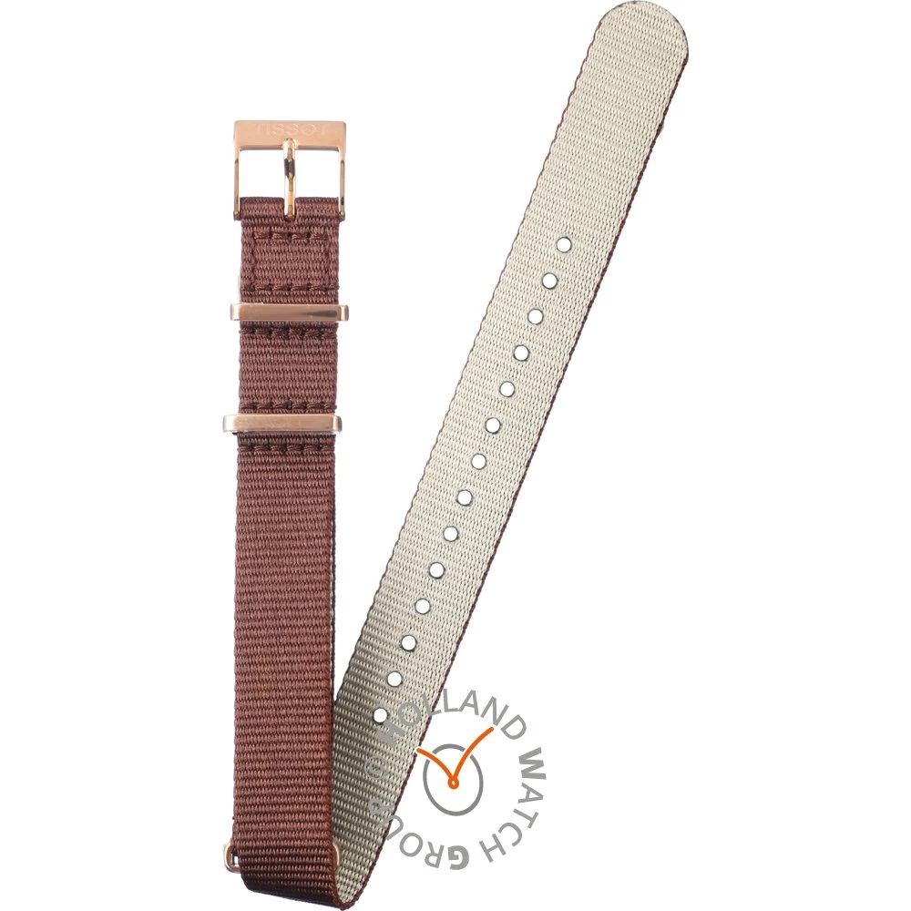 This Tissot watch strap is made of textile and is attached to the watch by means of none. The band has a width of 15 mm and is closed by means of a buckle. The strap has a straight mount which means that this strap is suitable for all Tissot watches with a straight mount.
