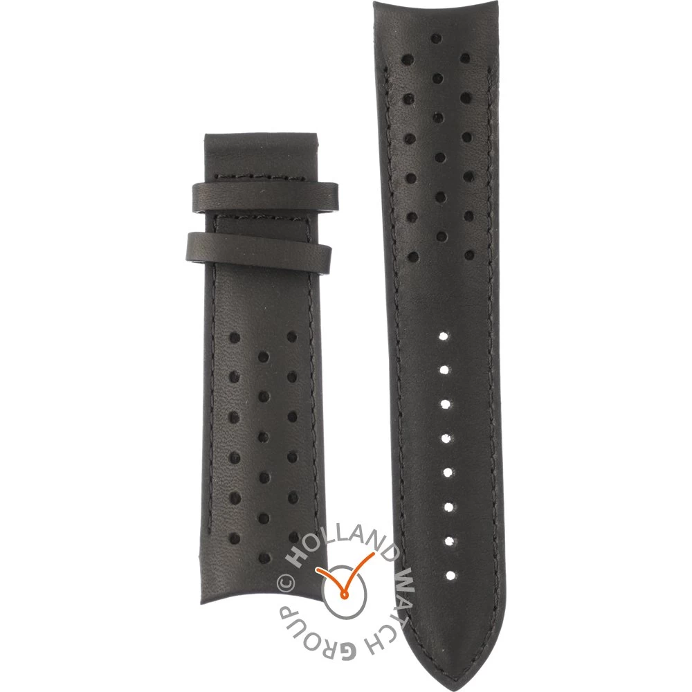 This Tissot watch strap is made of leather and is attached to the watch by means of push pins. The band has a width of 22 mm. The strap has no straight mount which means that this strap is only suitable for the watches listed below.