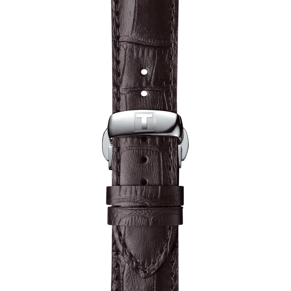 This Tissot watch has a case made of Steel silver with a diameter of 40 mm and is fitted with a leather strap. Inside the case lies a ETA movement and the watch features a Sapphire crystal.