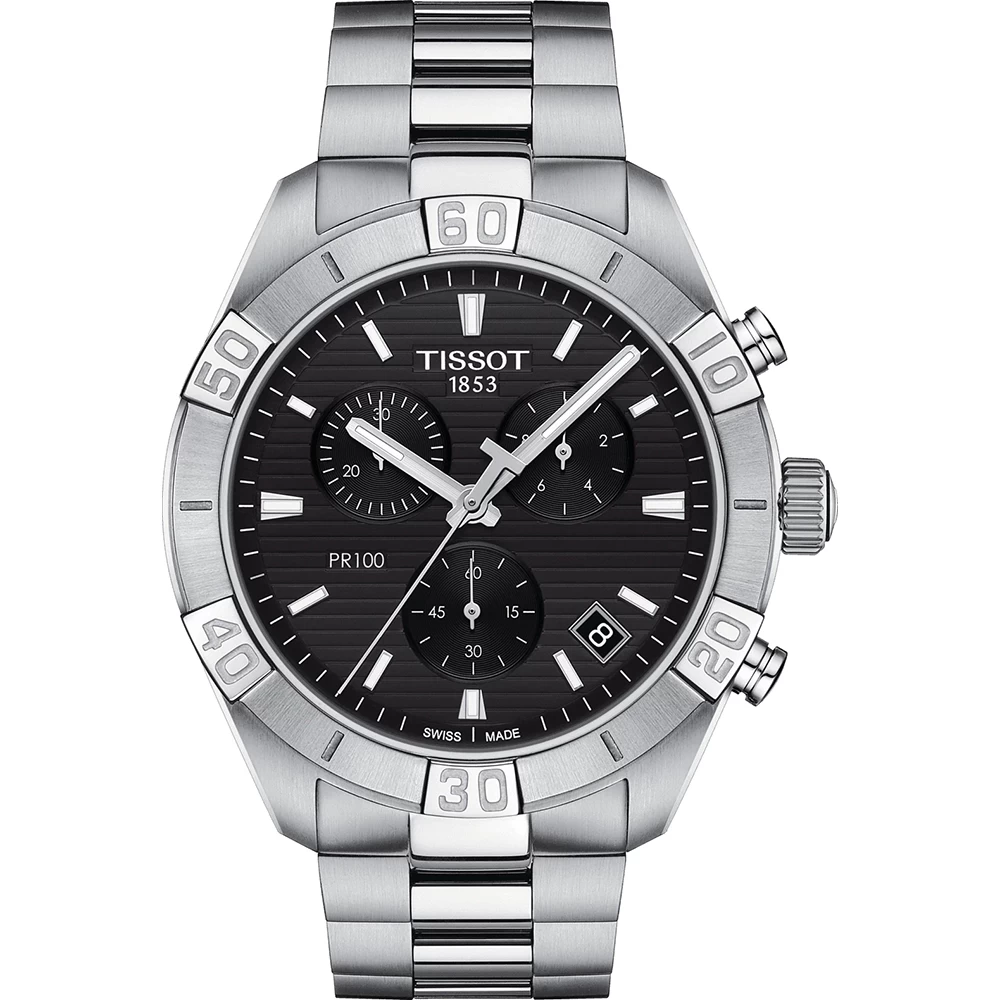 This Tissot watch has a case made of Steel silver with a diameter of 44 mm and is fitted with a Metal strap. Inside the case lies a ETA movement and the watch features a Sapphire crystal.