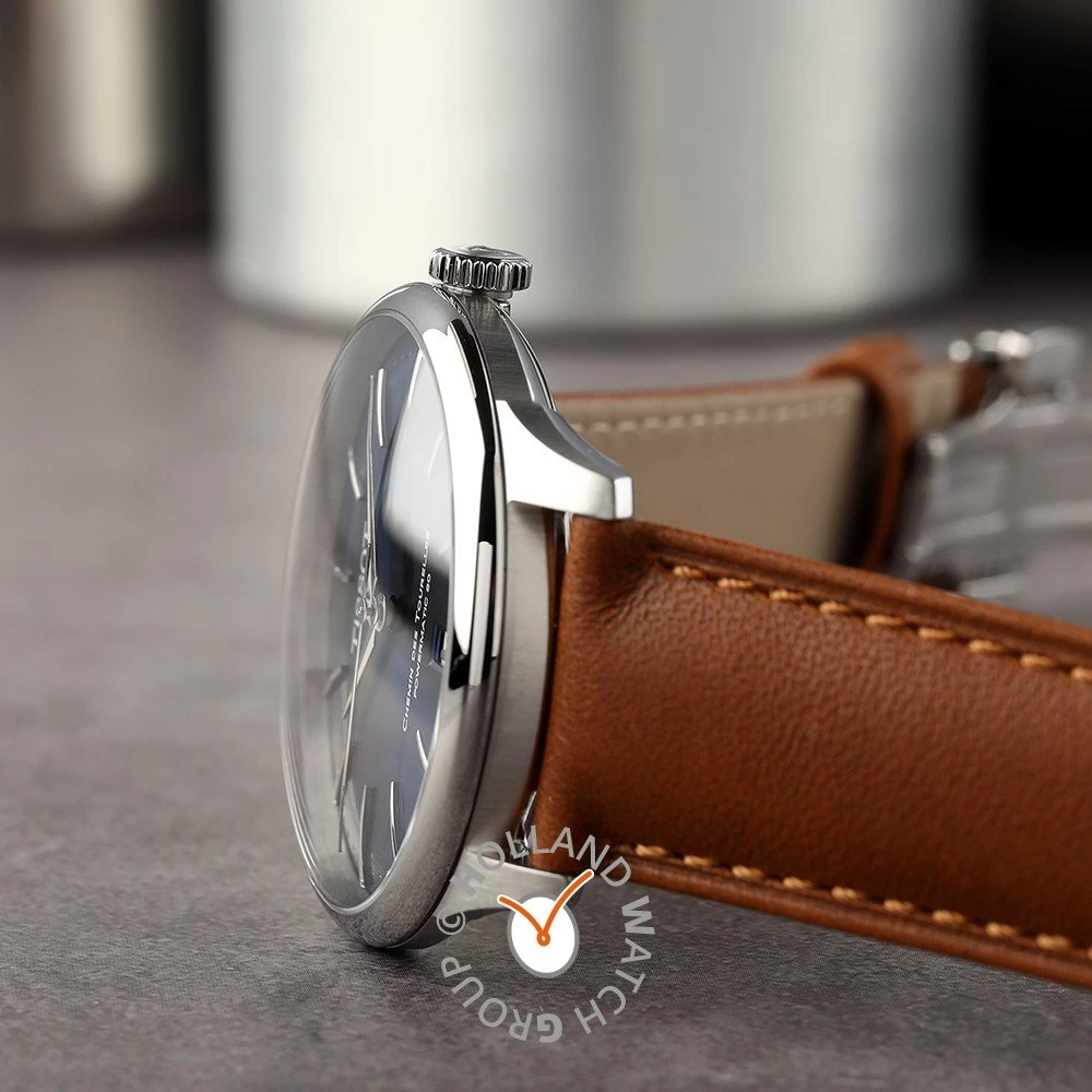 This Tissot watch has a case made of Steel silver with a diameter of 39 mm and is fitted with a leather strap. Inside the case lies a ETA movement and the watch features a Sapphire crystal.