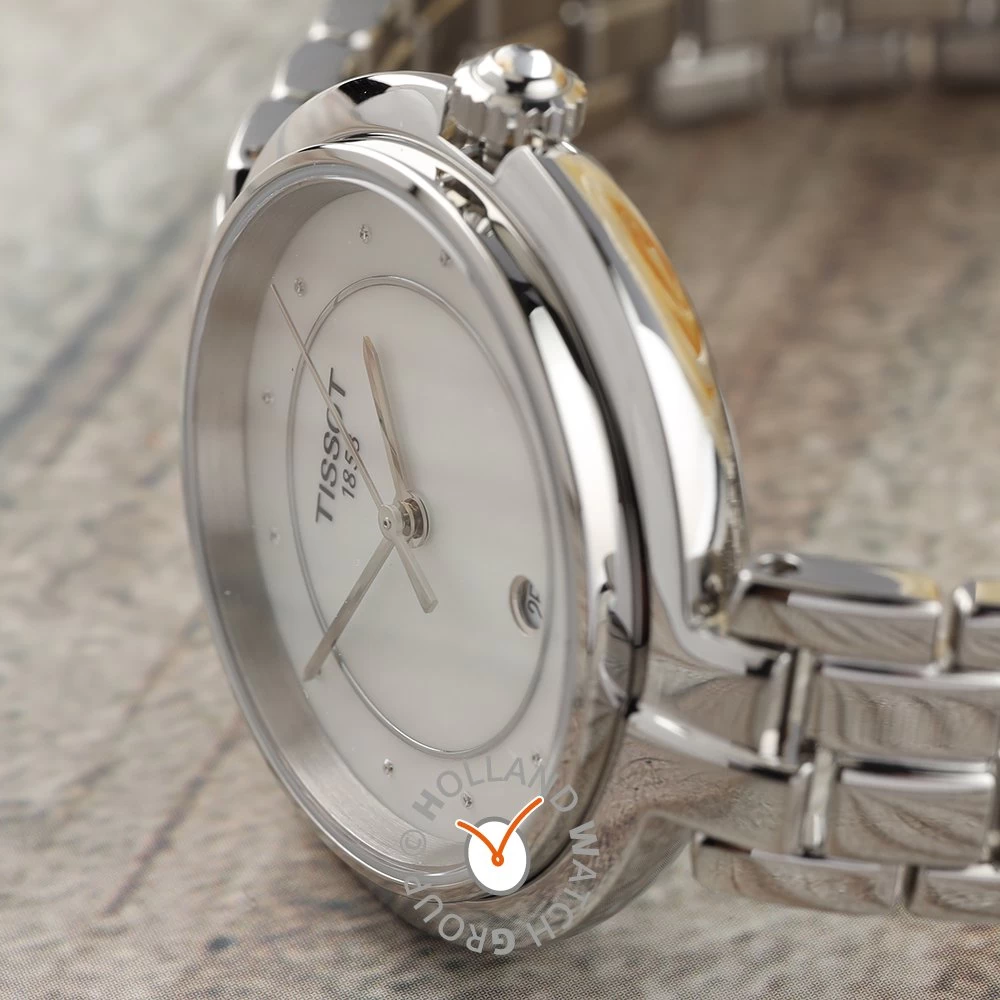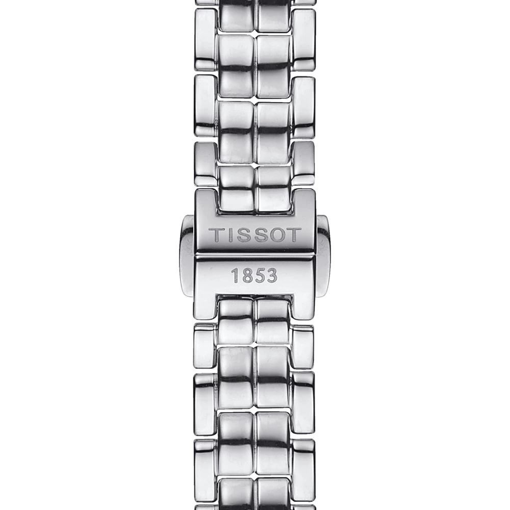 This Tissot watch has a case made of Steel silver with a diameter of 26 mm and is fitted with a Metal strap. Inside the case lies a ETA movement and the watch features a Sapphire crystal.