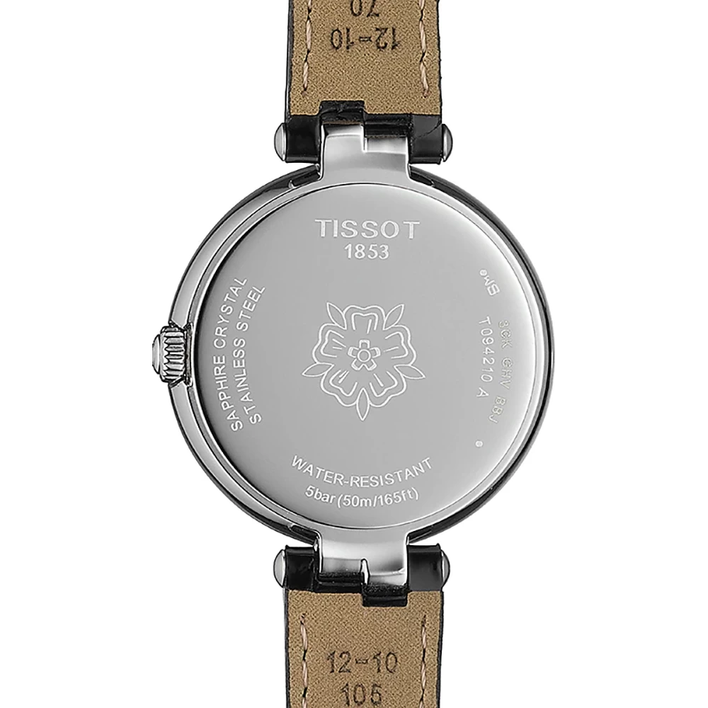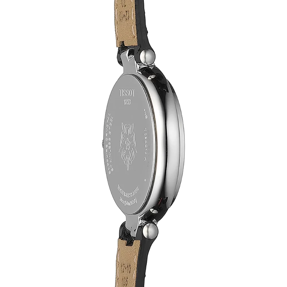 This Tissot watch has a case made of Steel silver with a diameter of 26 mm and is fitted with a leather strap. Inside the case lies a ETA movement and the watch features a Sapphire crystal.