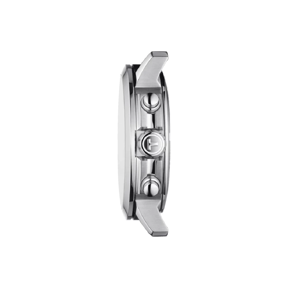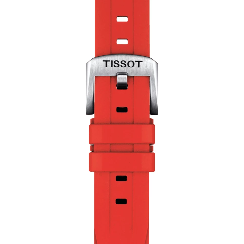 This Tissot watch has a case made of Steel silver with a diameter of 43 mm and is fitted with a rubber strap. Inside the case lies a ETA movement and the watch features a Sapphire crystal.