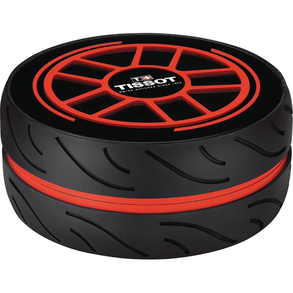 This Tissot watch has a case made of Steel silver with a diameter of 43 mm and is fitted with a rubber strap. Inside the case lies a ETA movement and the watch features a Sapphire crystal.
