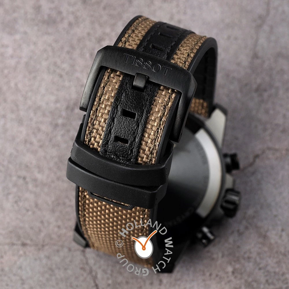 This Tissot watch has a case made of Steel silver with a diameter of 45.5 mm and is fitted with a rubber strap. Inside the case lies a ETA movement and the watch features a Sapphire crystal.